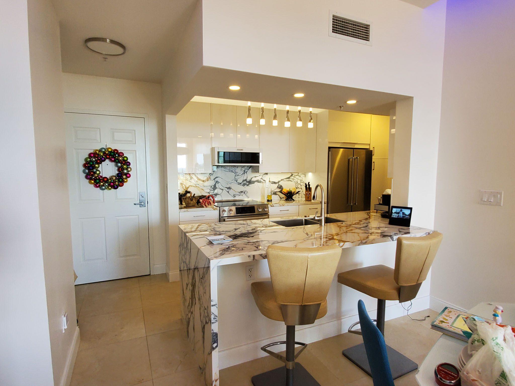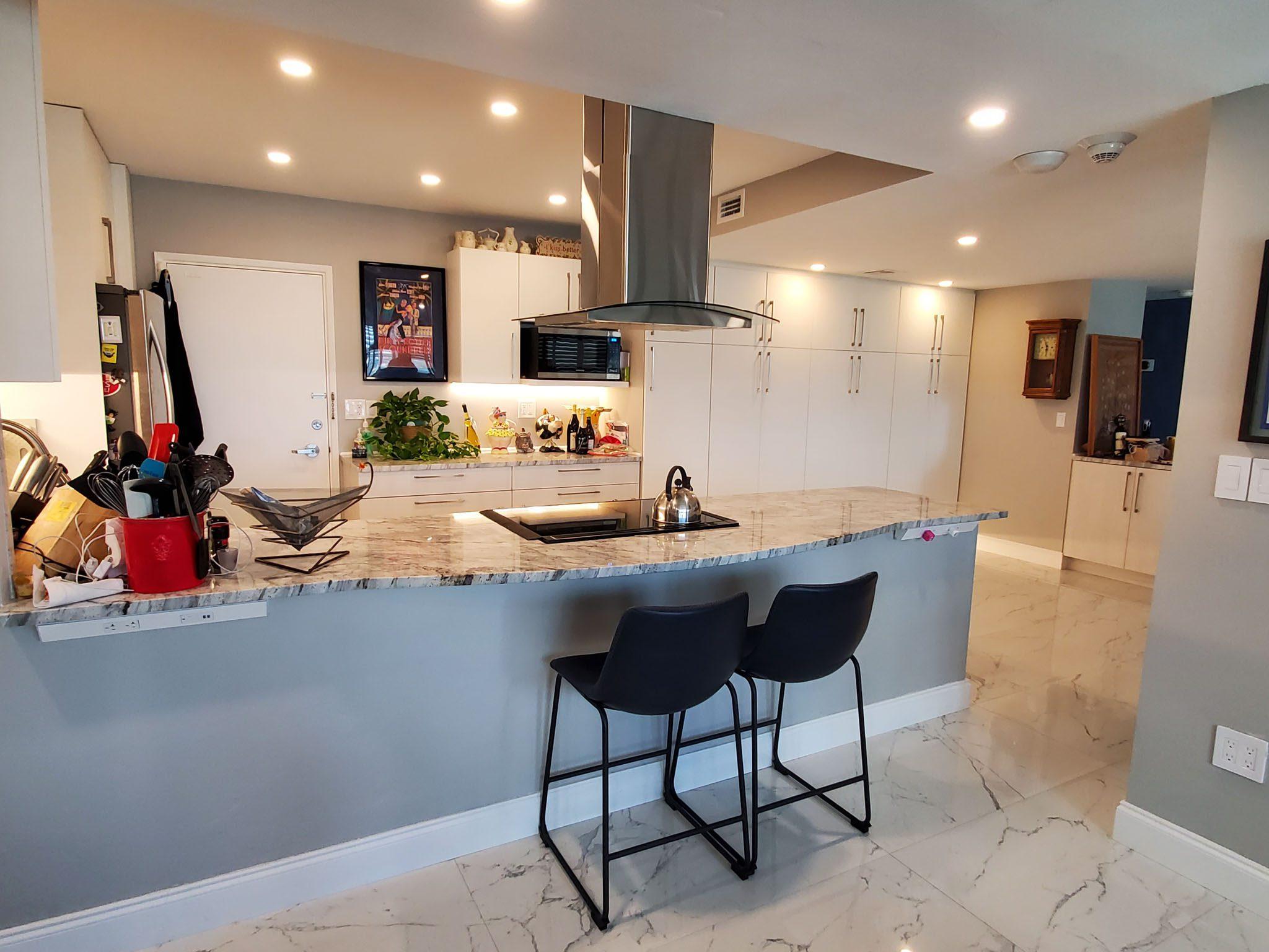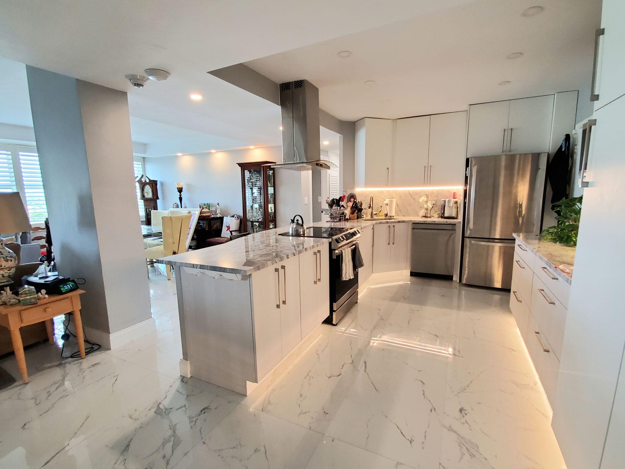 The comprehensive remodel of this canal-view penthouse in Fort Lauderdale is a testament to FLORIDA BUILDING LLC‘s capacity to manage high-level projects, even with remote management of clients preparing to relocate. In collaboration with Kitchen Solvers Of Fort Lauderdale, the challenge was twofold: to achieve a luxury finish and adapt a standard apartment to the needs of a chef client.