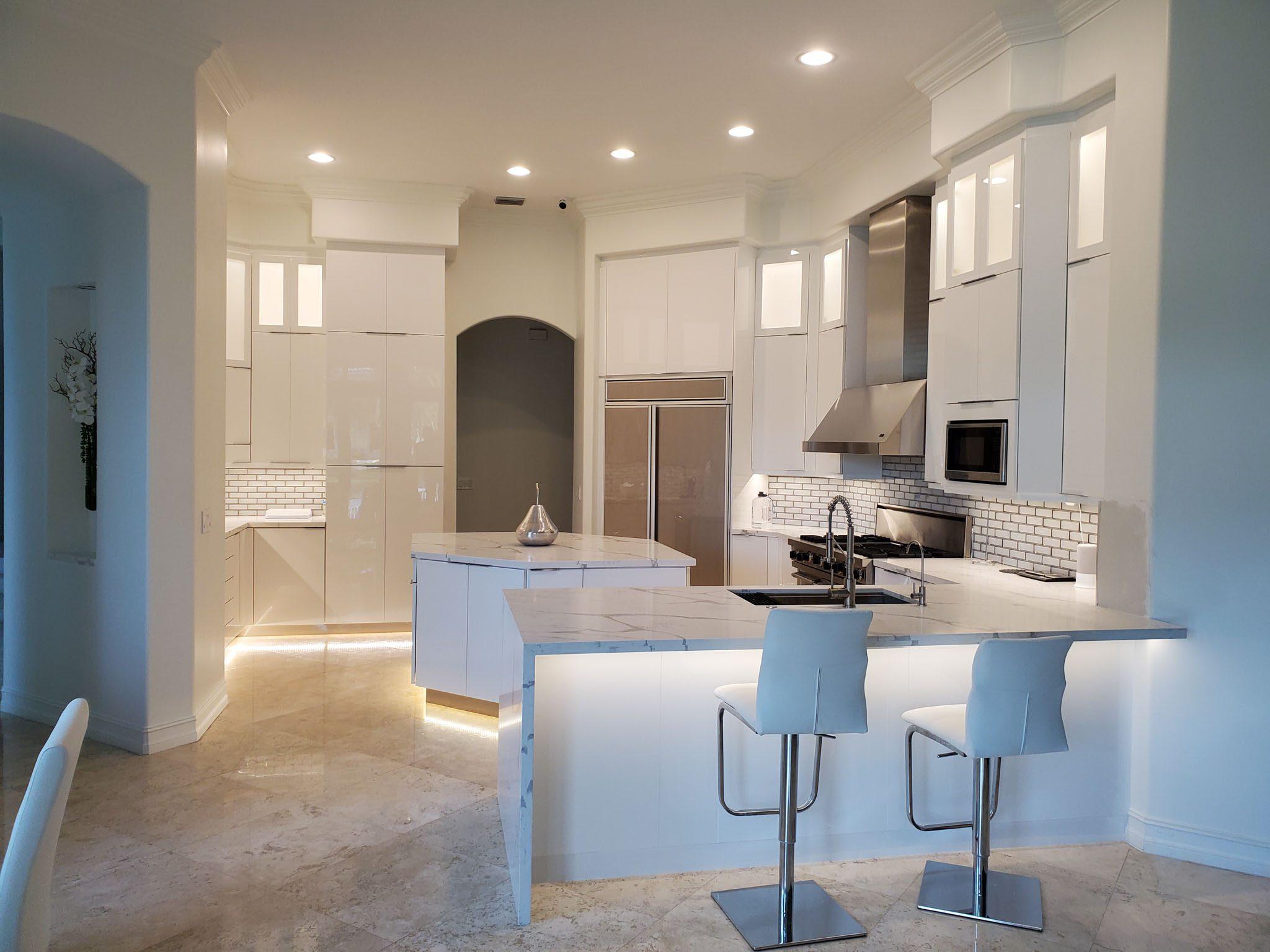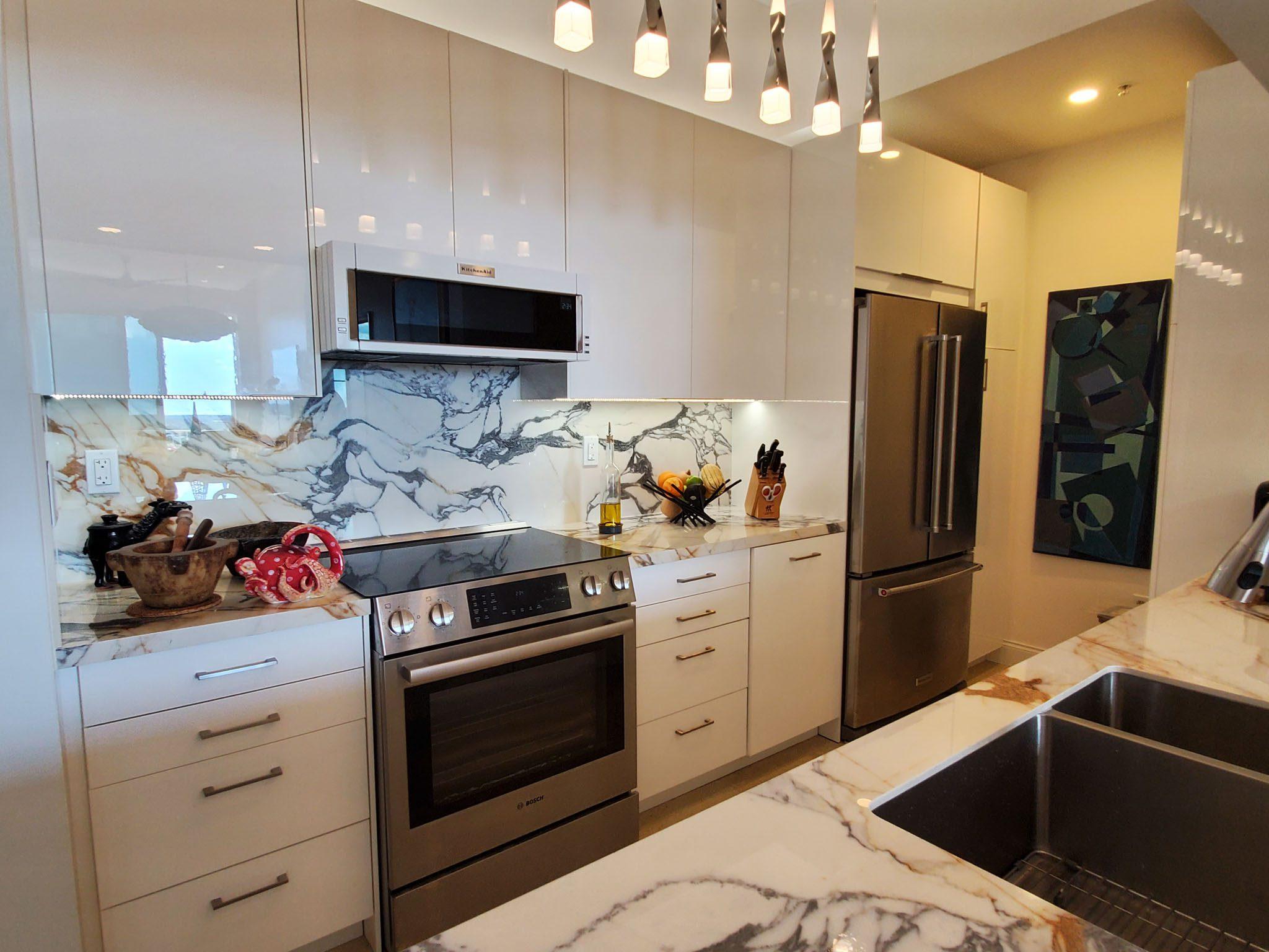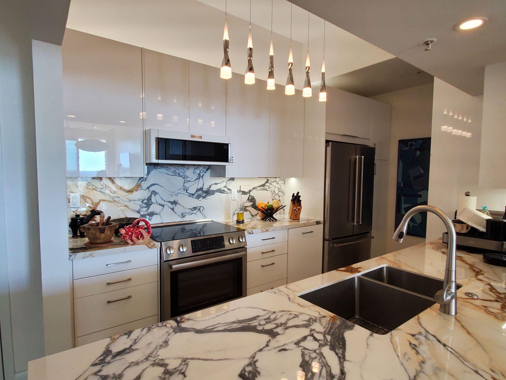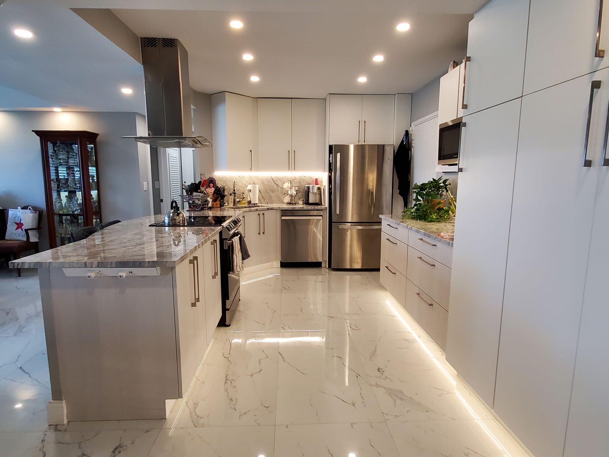 The comprehensive remodel of this canal-view penthouse in Fort Lauderdale is a testament to FLORIDA BUILDING LLC‘s capacity to manage high-level projects, even with remote management of clients preparing to relocate. In collaboration with Kitchen Solvers Of Fort Lauderdale, the challenge was twofold: to achieve a luxury finish and adapt a standard apartment to the needs of a chef client.