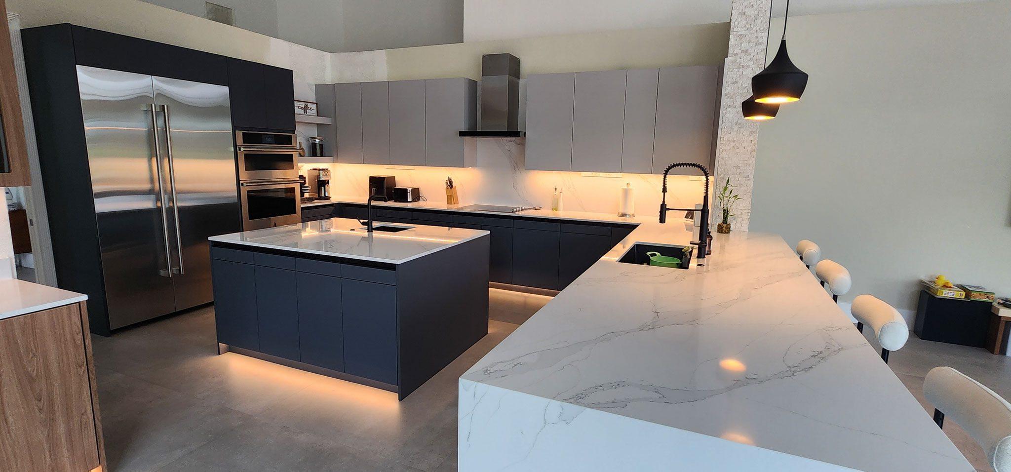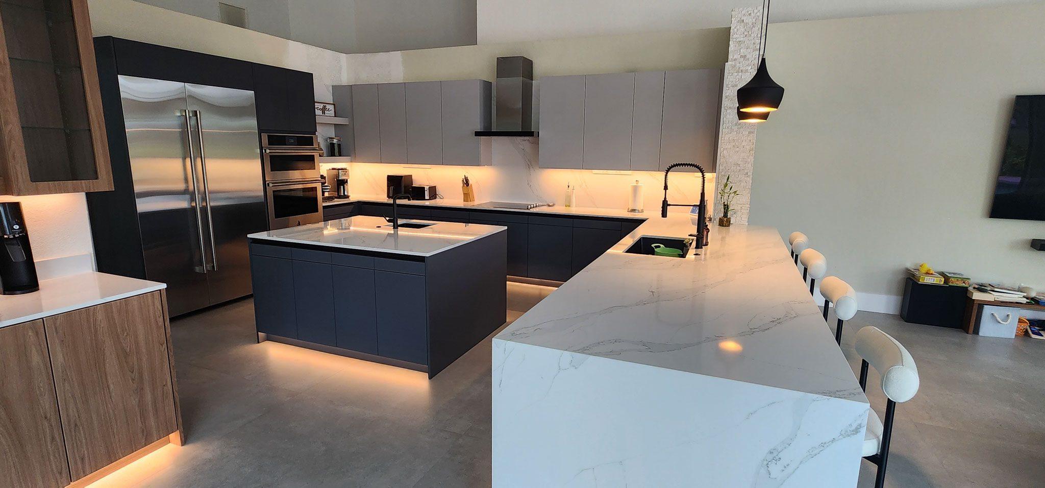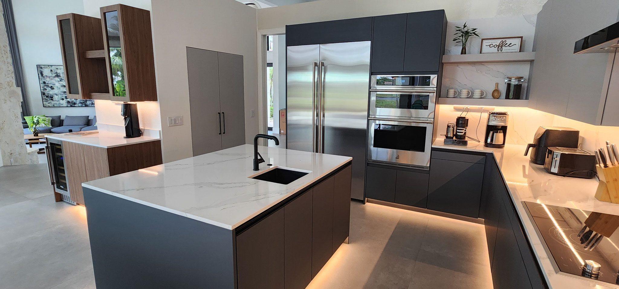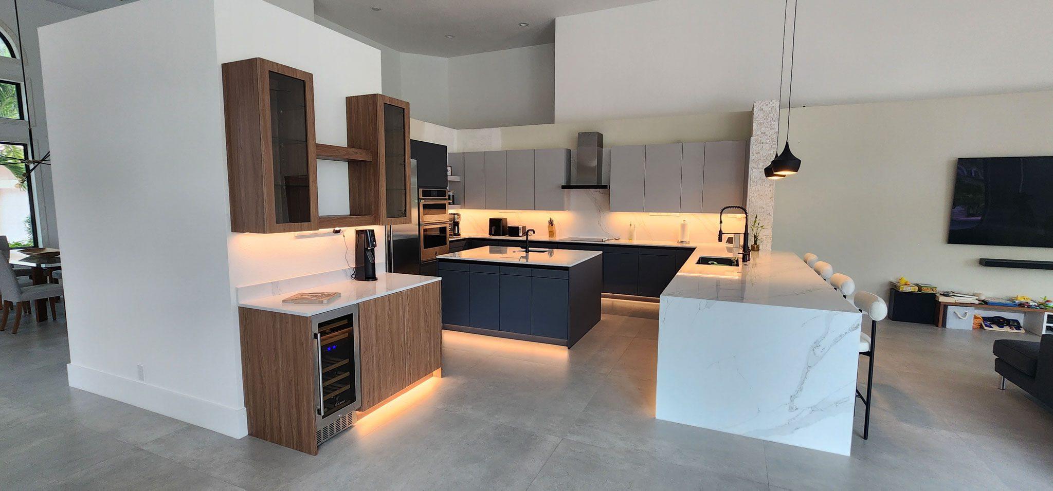 Kitchen remodeling is one of the most profitable investments in the Florida real estate sector. In collaboration with Kitchen Solvers Of Fort Lauderdale, FLORIDA BUILDING LLC executed the transformation of a large kitchen, achieving a modern and impactful effect with a strategic intervention, without altering the original structure or layout.