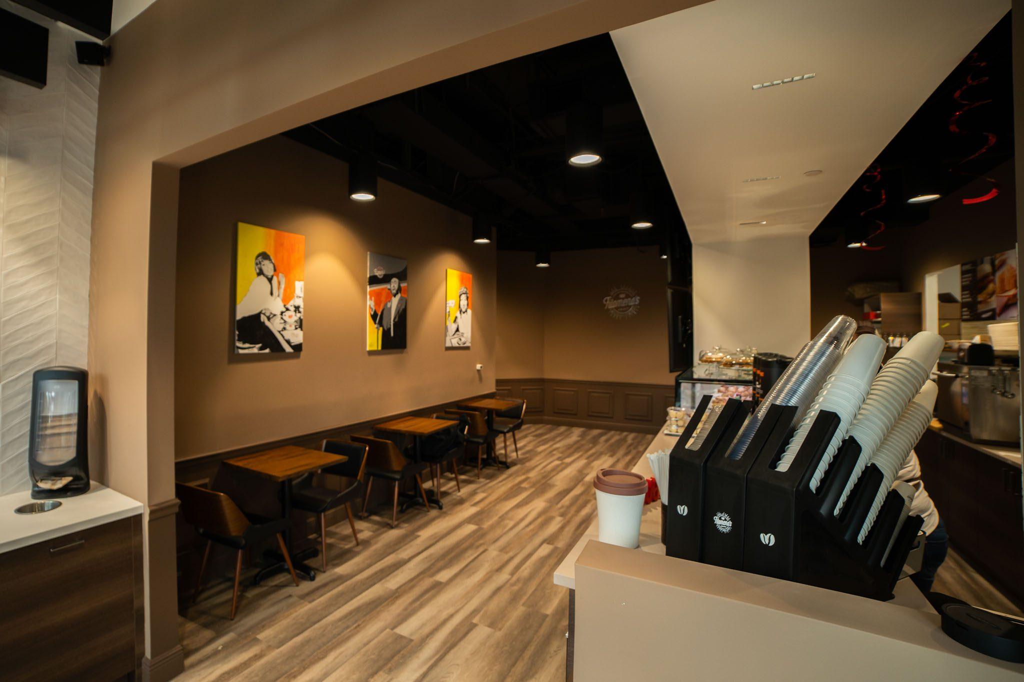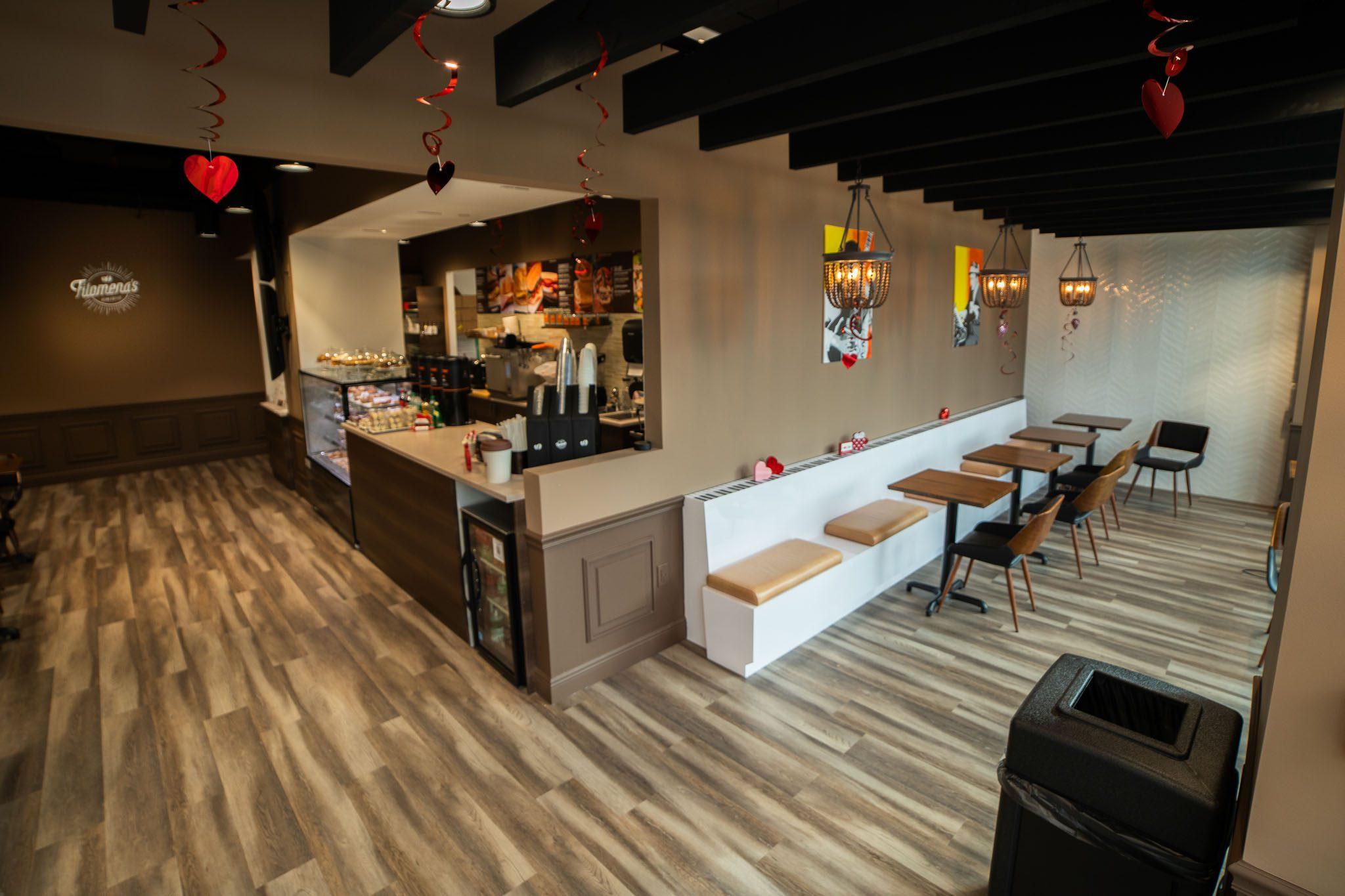 Focus on Brand Design: We managed the execution of the interior design finishes, from the installation of new floors that unify the space to the review of ceilings and the application of paint to reflect the visual identity of FILOMENA’S BEAN COFFEE.